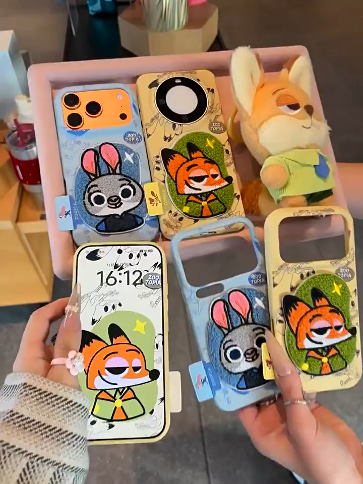 秋冬朱迪尼克刺绣卡通情侶皮紋手機殼