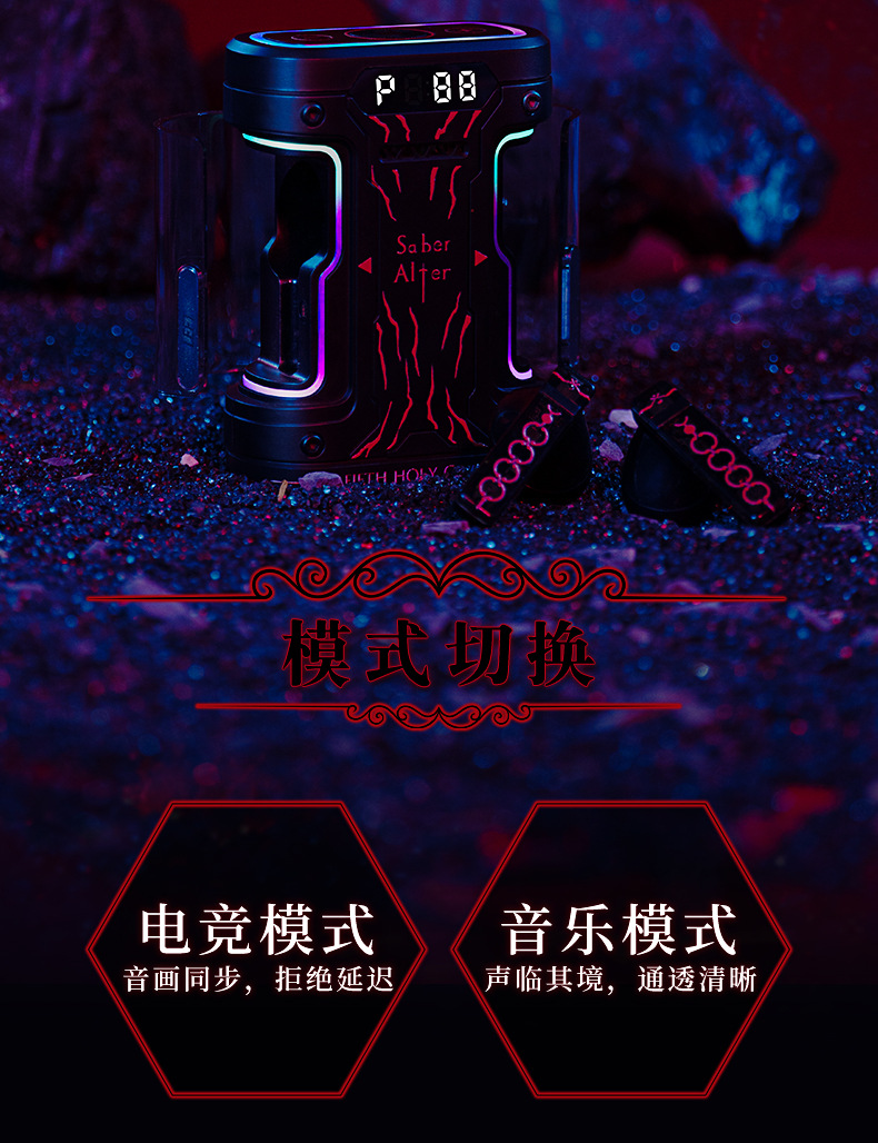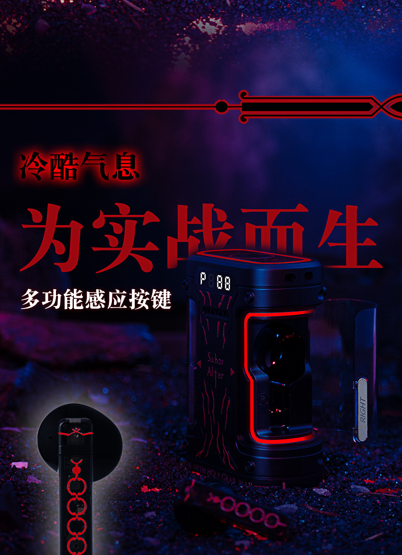Fate耳機 幸運石正版授權周邊侵蝕黑鎧賽博艙盒藍牙耳機